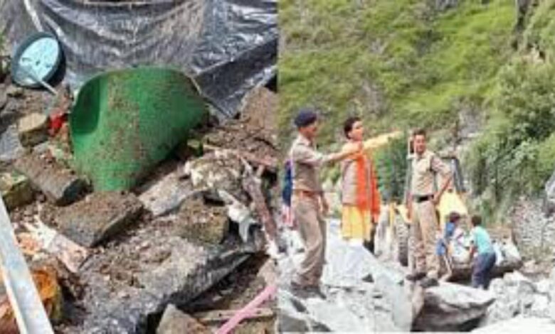 यमुनोत्री धाम को जोड़ने वाला फूलचट्टी जानकीचट्टी के बीच कृष्णा चट्टी में मार्ग तीसरे दिन भी बंद – फोटो : संवाद न्यूज एजेंसी