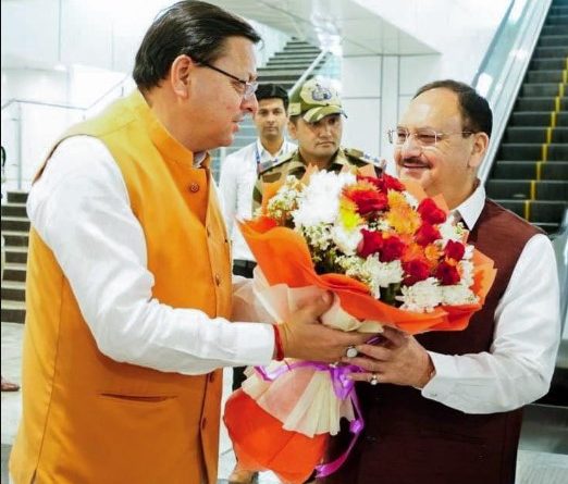 मुख्यमंत्री धामी ने केंद्रीय स्वास्थ्य मंत्री जे.पी नड्डा का जौलीग्रांट एयरपोर्ट पर किया स्वागत
